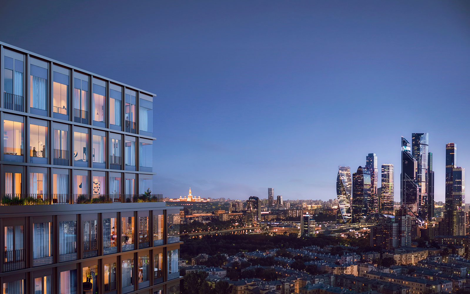 - панорамные виды на небоскребы Сити, Москва-реку, зеленые парки и историческую застройку